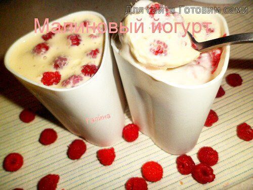 Добавить в молоко закваску, сахар,ванильный сахар и малину ,перемешать.